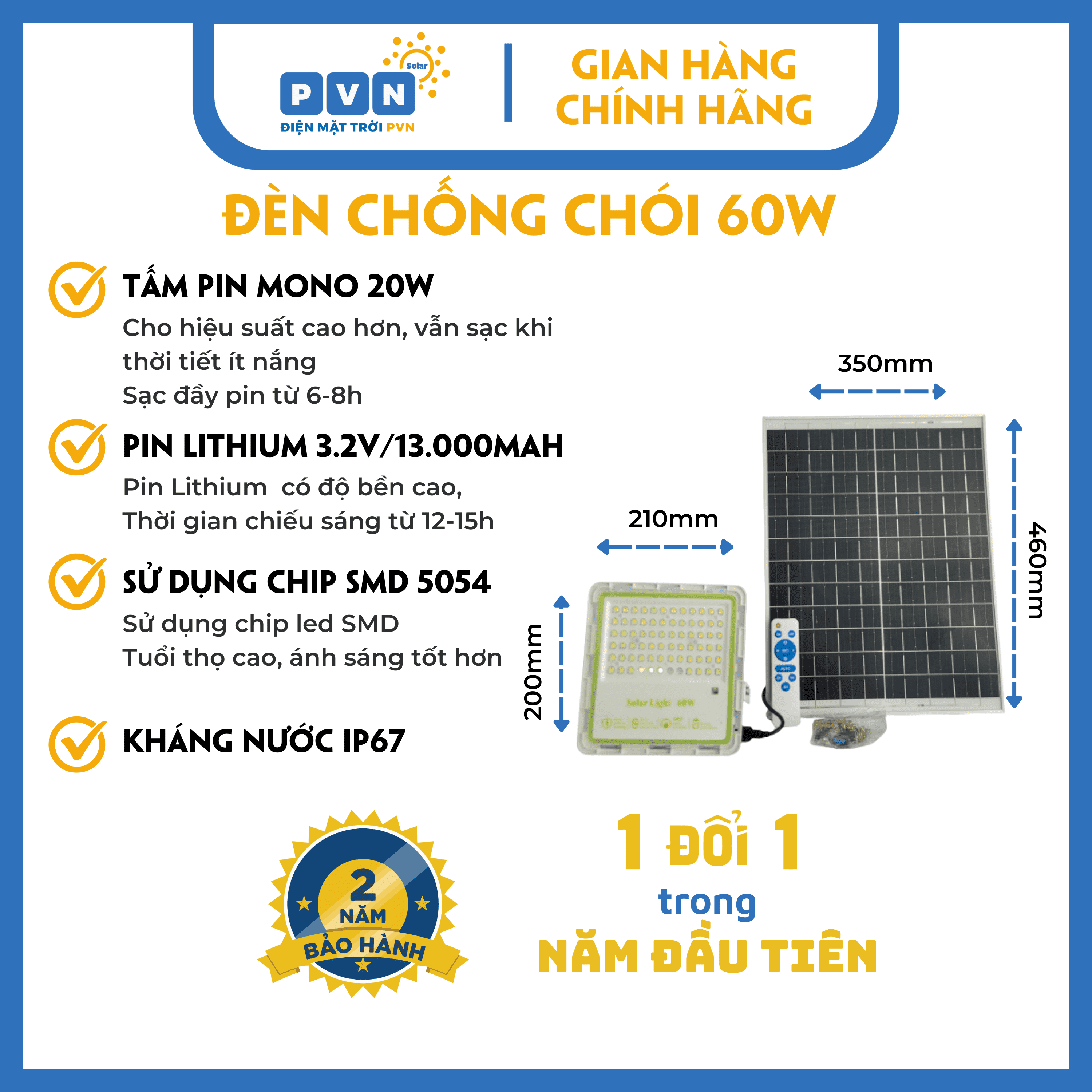 Sản phẩm đèn pha năng lượng mặt trời 60W của PVN Solar Light được đánh giá là một trong những sản phẩm chất lượng và hiệu quả nhất trên thị trường hiện nay.