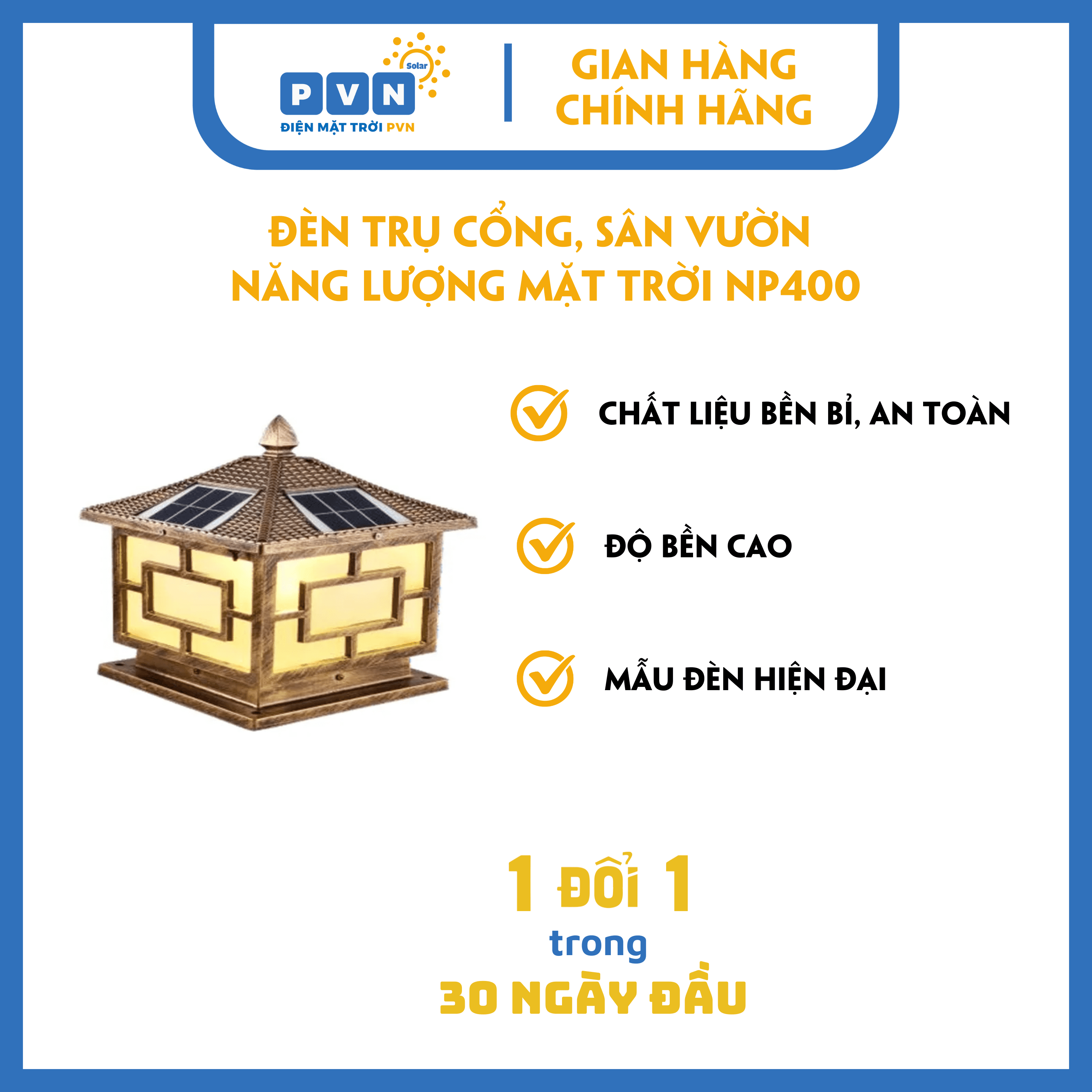 Đèn có kiểu dáng trụ vuông với kích thước 400mm x 400mm