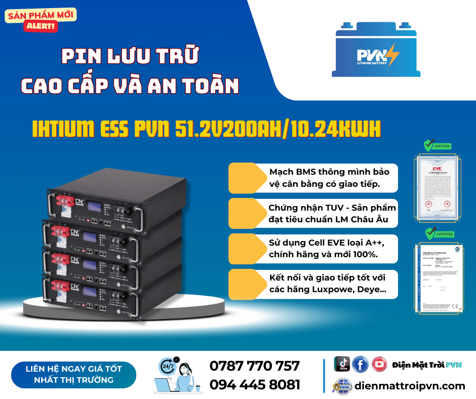Hãy đầu tư vào Pin lưu trữ PVN - một giải pháp lưu trữ năng lượng đáng tin cậy và an toàn cho hệ thống của bạn. Đảm bảo hiệu suất hoạt động ổn định và tiết kiệm chi phí dài hạn!