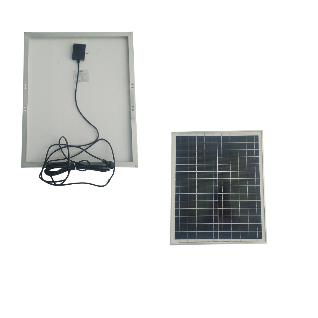 Đi kèm với quạt gồm có tấm pin mono công suất 22w, tấm pin năng lượng mặt trời sẽ hấp thụ nhiệt năng chuyển hóa thành điện năng và lưu trữ pin vào quạt để quạt có thể hoạt động.