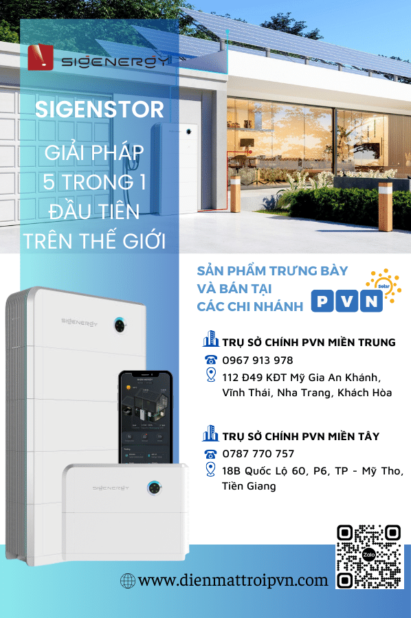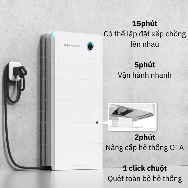 SigenStor: Tích hợp Biến tần năng lượng mặt trời, Bộ sạc EV DC, Pin PCS, Bộ pin và EMS vào một hệ thống năng lượng mạnh mẽ. Đơn giản hóa để cung cấp cho bạn trải nghiệm thông minh và liền mạch. Đa năng về bản chất, phục vụ cho mọi tình huống sử dụng năng lượng. Thiết kế đèn mắt đại bàng phía trước và ánh sáng xung quanh bên đầy phong cách, kết hợp trang nhã với mọi thứ xung quanh.