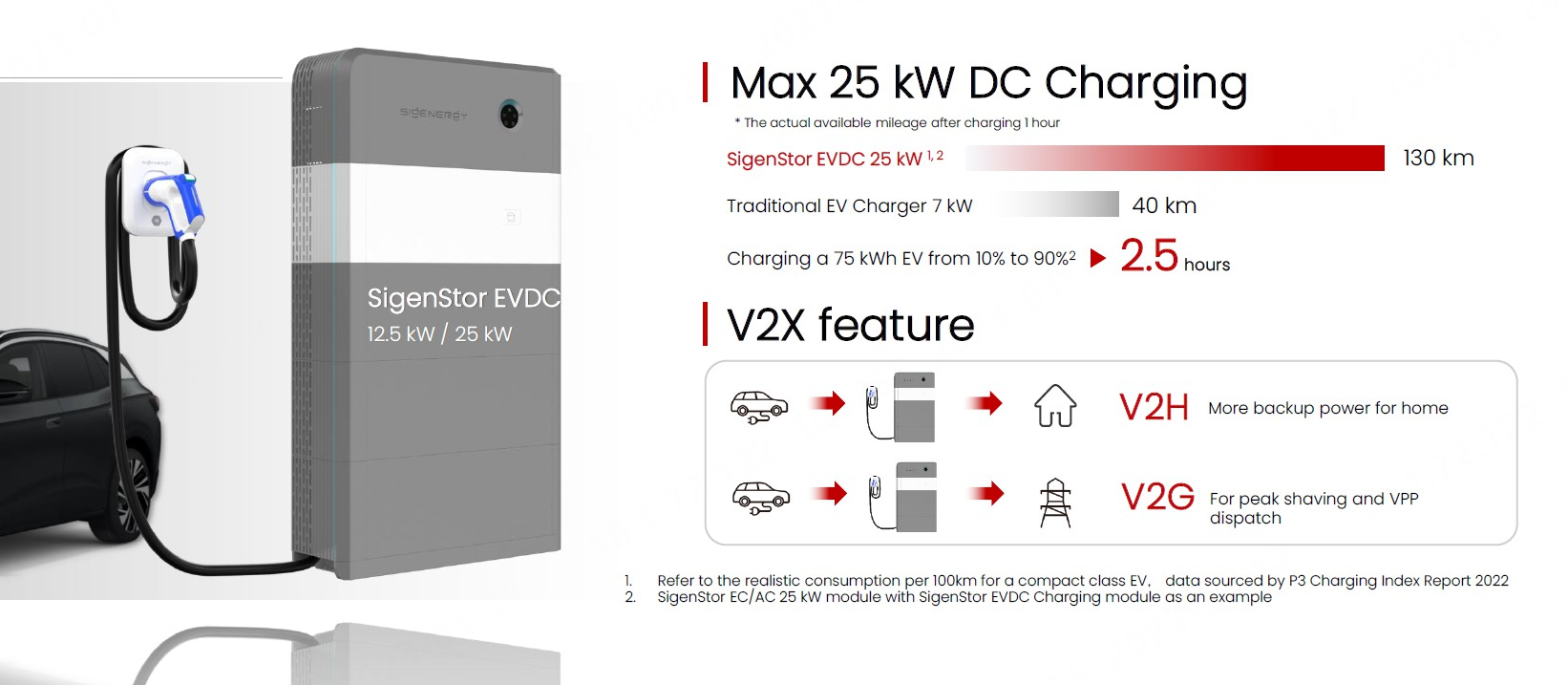 SigenStor dẫn đầu ngành công nghiệp, tiên phong trong việc tích hợp một mô-đun sạc EV DC, giúp sạc trực tiếp từ dòng điện sử dụng năng lượng xanh.